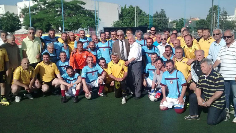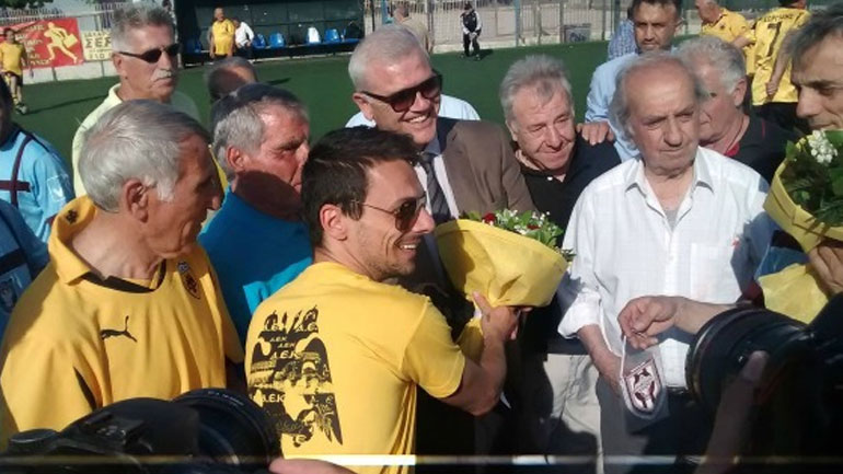 Πριν από την έναρξη του αγώνα, ο διοικητικός ηγέτης της Ένωσης φωτογραφήθηκε με τις παλιές δόξες των δύο ομάδων, ενώ έκανε και τη… σέντρα, μαζί με τον ζωντανό θρύλο του «δικεφάλου», Κώστα Νεστορίδη.