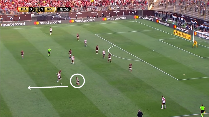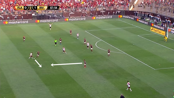 Η πάσα κόβεται από τον παίκτη τής Φλαμένγκο,