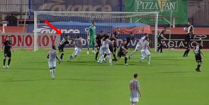 που σε μία εκτέλεση κόρνερ και ενώ το ματς βρισκόταν στο 0-0,