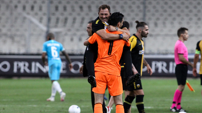 Το τελευταίο σφύριγμα του Ντίας στον αγώνα της ΑΕΚ επί της Βόλφσμπουργκ έδωσε το έναυσμα για τους ξέφρενους πανηγυρισμούς των «κιτρινόμαυρων», οι οποίοι, επικρατώντας με ανατροπή (2-1) της Βόλφσμπουργκ στο ΟΑΚΑ, κατέκτησαν την πρόκριση για τους ομίλους του Europa League.