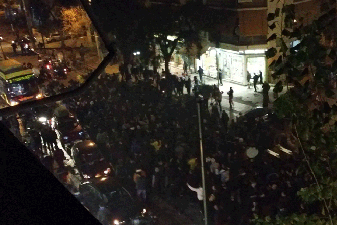 Η μεγάλη μάζα των φίλων του συλλόγου συγκεντρώθηκε λίγο πριν της 19.00 στον σταθμό ΗΣΑΠ στα Άνω Πατήσια και εκτός από το σύνθημα «γήπεδο στη Νέα Φιλαδέλφεια», αποδοκίμασε τον Δήμαρχο, Άρη Βασιλόπουλο.