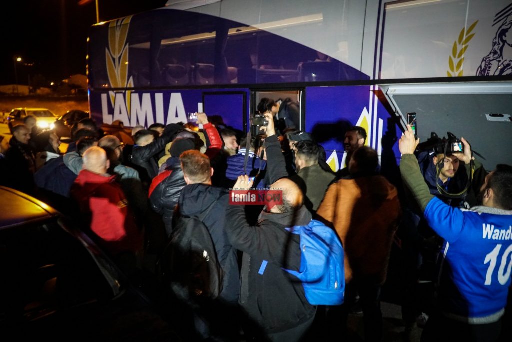 Με το σύνθημα «Κύπελλο – Κύπελλο, στο κάστρο να το δω», οι οπαδοί της ομάδας αποθέωσαν την αποστολή του ΠΑΣ Λαμία, που επέστρεψε στην πόλη λίγο πριν από τη 01.00 μετά τα μεσάνυχτα.