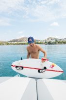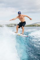Ο άσος των θαλάσσιων αθλημάτων, που διατηρεί μάλιστα τον τίτλο του πρώτου αθλητή παγκοσμίως που προσγείωσε backflip στο νερό χωρίς βοήθεια μηχανής, κύματος ή αέρα, μας εξέπληξε με τις μοναδικές του δυνατότητες και την άνεση με την οποία κινούνταν πάνω στα απόνερα του σκάφους, κάνοντας το να φαίνεται παιχνιδάκι.