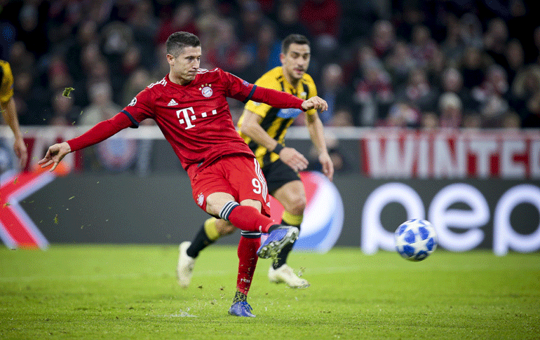 Με τη συμπλήρωση μισής ώρας παιχνιδιού έγινε η φάση που άλλαξε τα πάντα. Ο Τσόσιτς και ο Λεβαντόφσκι αλληλοτραβήχτηκαν στην περιοχή και ο διαιτητής έδωσε πέναλτι! Δευτερόλεπτα νωρίτερα είχε προειδοποιήσει τον παίκτη της ΑΕΚ, κάτι που ουσιαστικά εκμεταλλεύτηκε ο Πολωνός για να εκβιάσει την απόφαση. Ο ίδιος ανέλαβε την εκτέλεση και άνοιξε το σκορ στο 31΄, σημειώνοντας το 48ο γκολ του στο Champions League. Στο 37’ ο Τσόσιτς έσωσε βέβαιο γκολ με καταπληκτικό τάκλιν στο σουτ του Μίλερ και έτσι οι δύο ομάδες οδηγήθηκαν στα αποδυτήρια για το ημίχρονο.