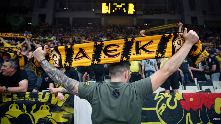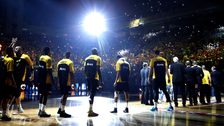 Η είσοδος της ΑΕΚ στο κλειστό του ΟΑΚΑ