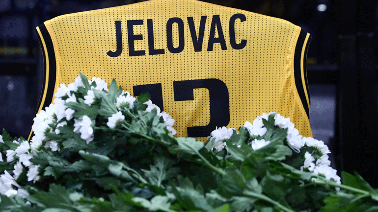 Σε έντονα φορτισμένη συγκινησιακά ατμόσφαιρα, η ΚΑΕ ΑΕΚ ύψωσε τη φανέλα του αδικοχαμένου Στέφαν Γέλοβατς στον ουρανό του κλειστού των Άνω Λιοσίων, τιμώντας τη μνήμη του Σέρβου, πριν την αναμέτρηση με την Φάλκο Σομπατέλι για την 5η αγωνιστική του Basketball Champions League.