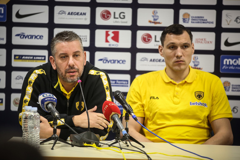 Δώσαμε πολλούς τελικούς σε εισαγωγικά, όπως με τη Βενέτσια, την Μπρέσια και το Περιστέρι. Αύριο όμως είναι πραγματικός τελικός. Και οι δύο ομάδες είναι συνηθισμένες να παίζουν συνέχεια δύσκολα παιχνίδια. Πιστεύω πως είμαστε έτοιμοι. Είμαστε όλοι υγιείς, να χτυπήσω ξύλο. Ξέρουμε τα πλεονεκτήματα και τα μειονεκτήματα της ΑΕΚ και θα προσπαθήσουμε να κερδίσουμε».