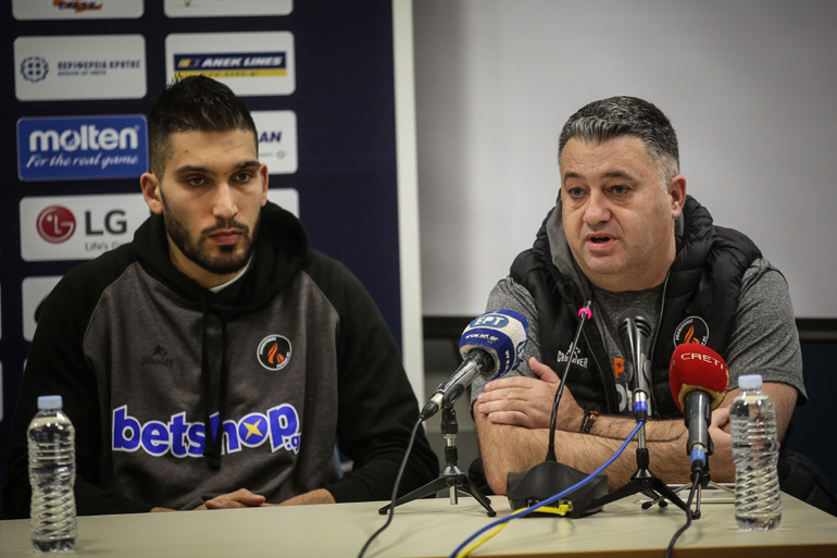 Στη συνέχεια, το λόγο πήρε ο τεχνικός του Προμηθέα, Μάκης Γιατράς: «Είναι μεγάλη χαρά και τιμή που βρισκόμαστε στην Κρήτη, ευχαριστούμε για τη φιλοξενία. Έχουμε ό,τι χρειαζόμαστε για να είναι άνετη η παραμονή και η προετοιμασία μας. Ελπίζουμε να γίνει ένα καλό παιχνίδι. Σκοπός μας είναι να πάρουμε το Κύπελλο. Ξέρουμε πως απέναντί μας έχουμε μια μεγάλη ομάδα, αλλά θα είμαστε έτοιμοι να παλέψουμε για να διεκδικήσουμε τον τίτλο.