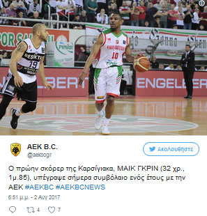 Ακόμη μία μεταγραφή πραγματοποίησε η ομάδα μπάσκετ της ΑΕΚ, η οποία ενέταξε στο δυναμικό της τον Μάικ Γκριν.