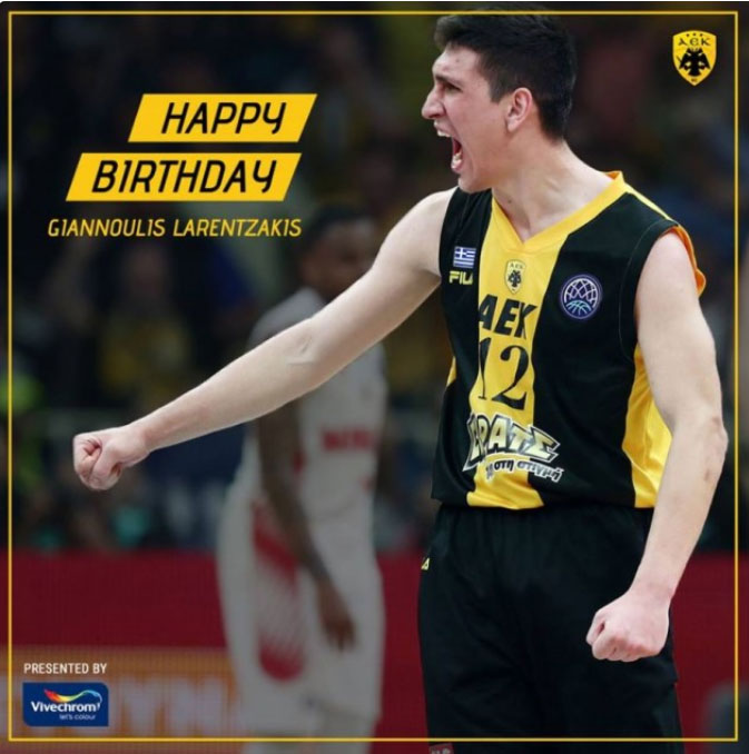 Ο Γιαννούλης Λαρεντζάκης γιορτάζει σήμερα τα 25α γενέθλιά του και η ομάδα μπάσκετ της ΑΕΚ ευχήθηκε τα καλύτερα...