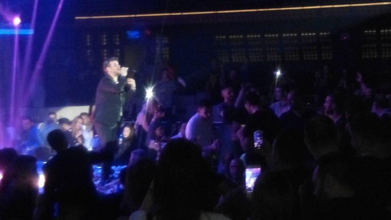Έτσι όλη η ομάδα της ΑΕΚ βρέθηκε στο νυχτερινό κέντρο όπου τραγουδάει ο Πάνος Κιάμος, με τον γνωστό τραγουδιστή να υποδέχεται τον Δικέφαλο με τον ύμνο της ομάδας.