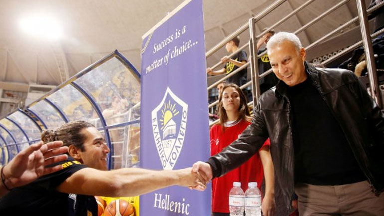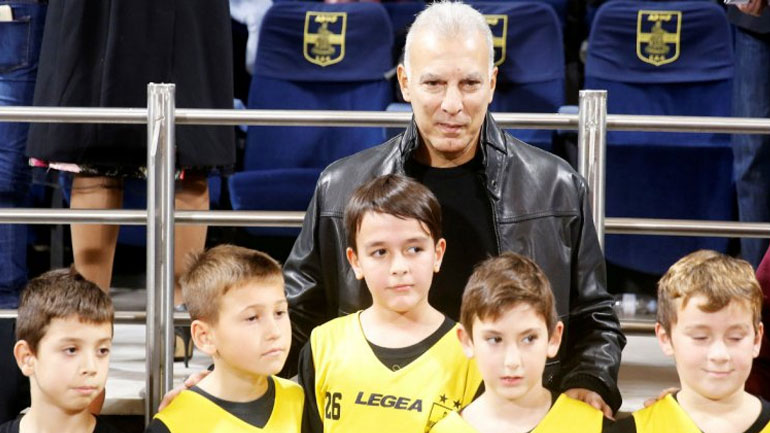 Ο θρυλικός άσος στην συνέχεια ανέβηκε στα VIP του «Nick Galis Hall», όπου χαιρετήθηκε θερμά με τον πρώην συμπαίκτη του και πρόεδρο του Άρη, Χάρη Παπαγεωργίου και κάθισαν μαζί.