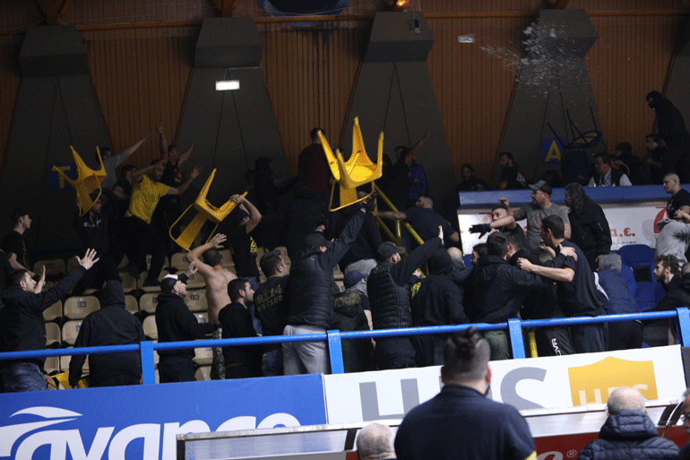 Το ματς ανάμεσα στο Περιστέρι και τον Άρη για την Basket League αμαυρώθηκε από σοβαρά επεισόδια μεταξύ των οπαδών των δύο ομάδων. Στο 33ο λεπτό του αγώνα οι οπαδοί των δύο ομάδων συνεπλάκησαν στις εξέδρες του κλειστού με αποτέλεσμα να διακοπεί η αναμέτρηση.