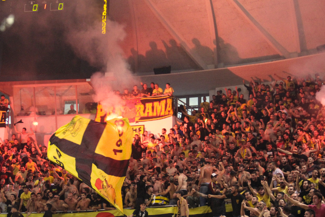 Εν συνεχεία ο πρόεδρος της ΚΑΕ Άρης Λευτέρης Αρβανίτης πήρε το μικρόφωνο και έκανε συστάσεις στους φίλους των «κίτρινων», ζητώντας τους να έχουν κόσμια συμπεριφορά.