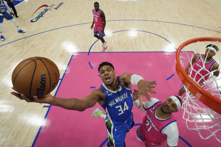 Με τον Γιάννη Αντετοκούνμπο σε μεγάλα κέφια, οι Μπακς έκαναν περίπατο στην έδρα των Ουίζαρντς, επικρατώντας με 140-128 και βρίσκονται μια «ανάσα» από την εξασφάλιση της πρωτιάς στην κανονική περίοδο.