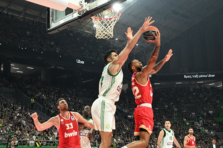 Από την άλλη πλευρά, ο Ολυμπιακός, είχε σε καλή μέρα επιθετικά τους Βεζένκοβ και Φαλ με τον δεύτερο να κάνει πολλή δουλειά και στα ριμπάουντ, οι οποίοι και τον κράτησαν ουσιαστικά στο παιχνίδι, μέχρι ενός σημείου. Όμως δεν πήρε τίποτε από τους περιφερειακούς του, στο μεγαλύτερο διάστημα της αναμέτρησης, ούτε αμυντικά, ούτε επιθετικά, ούτε οργανωτικά, παρά μόνο αρκετές λανθασμένες επιλογές, ενώ η αστοχία των «ερυθρόλευκων» σε δίποντα και τρίποντα, έναντι των αντίστοιχων ποσοστών των «πρασίνων», ουσιαστικά επέδρασε καταλυτικά στην τελική εξέλιξη της αναμέτρησης. Η ομάδα του Γιώργου Μπαρτζώκα φάνηκε πιο κουρασμένη και καταβεβλημένη ψυχολογικά έναντι αυτής του Εργκίν Αταμάν, που επίσης έδειξε κουρασμένη και δεν βρέθηκε στην καλύτερη βραδιά της, αλλά είχε ορισμένα ξεσπάσματα που της εξασφάλισαν διψήφιες διαφορές πάνω στις οποίες «χτίστηκε» το νικηφόρο αποτέλεσμα.
