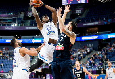 Πρώτος σκόρερ για την Ελλάδα ήταν ο Πρίντεζης με 22 πόντους, με τους Σλούκα και Καλάθη να προσθέτουν από 15 ο καθένας και τον Αντετοτούνμπο να δίνει φοβερή ενέργεια στο παρκέ και να τελειώνει την αναμέτρηση με 12 πόντους. Λοβέρν και Φουρνιέ με 21 πόντους έκαστος «πλήγωσαν» τη γαλανόλευκη, ενώ 16 πρόσθεσε ο Νάντο ντε Κολό.