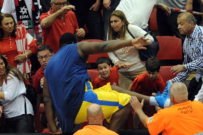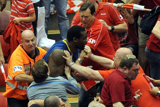 Ο Έλληνας διεθνής σέντερ, μετά το φινάλε του μεγάλου ντέρμπι του ισραηλινού πρωταθλήματος, όπου η ομάδα του επικράτησε με 83-80, βγήκε εκτός εαυτού και ανέβηκε στην κερκίδα για ν’ απαντήσει στις προκλήσεις, ωστόσο ευτυχώς οι συμπαίκτες του τον συγκράτησαν κυριολεκτικά την τελευταία στιγμή.