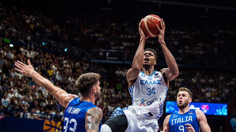 Η εθνική είχε κρατήσει στους 6 πόντους τον σταρ της Ιταλίας, Σιμόνε Φοντέκιο, στους 5 τον Λουίτζι Ντατόμε, με τους Πολονάρα (11π.) και Μέλι (8π.) να είναι οι σκόρερ της αντιπάλου. Την ίδια ώρα, ο Γιάννης Αντετοκούνμπο μετρούσε 15 πόντους και 12 ο Ντόρσεϊ.