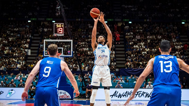 Η εθνική είχε κρατήσει στους 6 πόντους τον σταρ της Ιταλίας, Σιμόνε Φοντέκιο, στους 5 τον Λουίτζι Ντατόμε, με τους Πολονάρα (11π.) και Μέλι (8π.) να είναι οι σκόρερ της αντιπάλου. Την ίδια ώρα, ο Γιάννης Αντετοκούνμπο μετρούσε 15 πόντους και 12 ο Ντόρσεϊ.