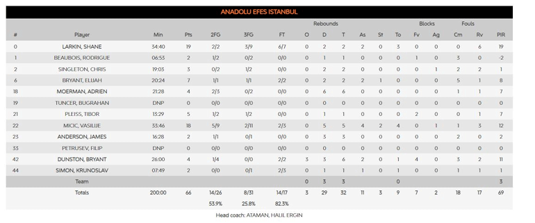 Η Αναντολού έδειχνε αποφασισμένη από τα πρώτα λεπτά το αγώνα για το δεύτερο «διπλό», είχε τον έλεγχο του ματς στο μεγαλύτερο μέρος της αναμέτρησης και τρία λεπτά πριν από τη λήξη έγραψε το υπέρ της 59-63.