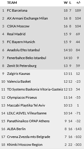 Μετά την ήττα του Ολυμπιακού από την Εφές, η 25η αγωνιστική της Ευρωλίγκας συνεχίζεται με τέσσερις αναμετρήσεις. Να υπενθυμίσουμε ότι ο αγώνας ΤΣΣΚΑ Μόσχας-Παναθηναϊκός αναβλήθηκε, καθώς οι «πράσινοι» μετρούν 11 κρούσματα κορωνοϊού.