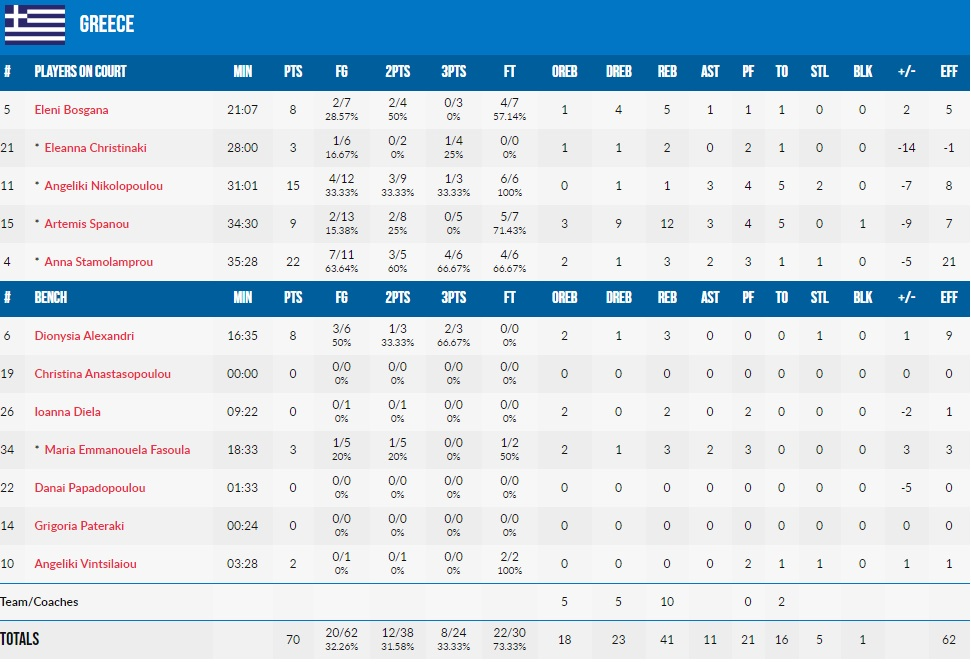 Μελανό σημείο του αγώνα ήταν ο τραυματισμός στο κεφάλι της Μαριέλλας Φασούλα, η οποία αποχώρησε με φορείο από το κλειστό «Δύο Αοράκια».