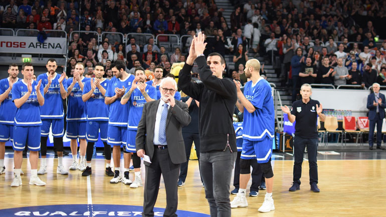 Πριν το τζάμπολ του τελευταίου αγώνα της εθνικής, απέναντι στα «πάντσερ», για τα προκριματικά του Παγκοσμίου Κυπέλλου 2019, ο γενικός γραμματέας της ΕΟΚ, Παναγιώτης Τσαγκρώνης, παρέδωσε μία φανέλα με το νούμερο 189, όσες και οι συμμετοχές του στη «γαλανόλευκη», καθώς και μία «χρυσή» μπάλα μπάσκετ.
