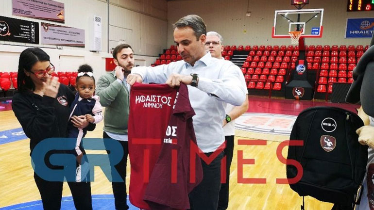 Το κλειστό Γυμναστήριο της Μύρινας «Νίκος Σαμαράς», την έδρα του Ήφαιστου Λήμνου, επισκέφτηκε τη Δευτέρα ο Κυριάκος Μητσοτάκης πριν αναχωρήσει από το νησί, για να δει την προπόνηση της ομάδας.