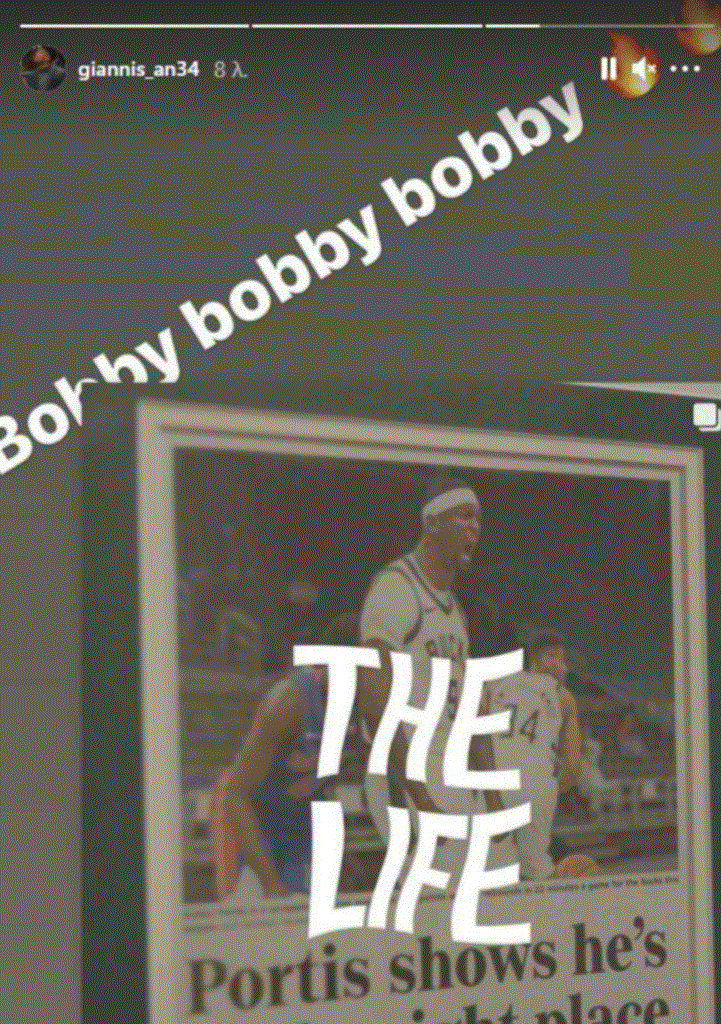 Ο Αντετοκούνμπο μόλις πληροφορήθηκε τη συμφωνία δημοσίευσε στο instagram ένα story με το σύνθημα που ακουγόταν στους τελικούς για τον συμπαίκτη του.