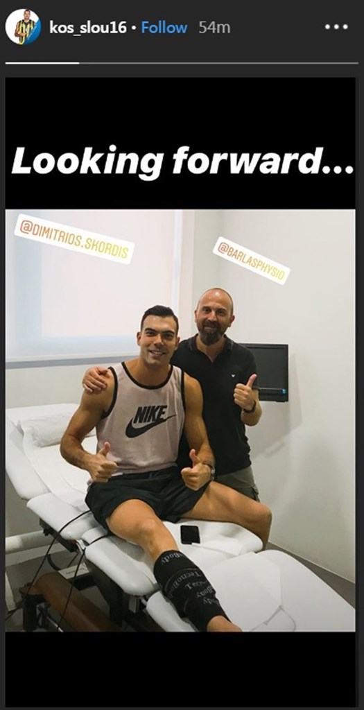 Μάλιστα τη Δευτέρα ο Σλούκας στον προσωπικό του λογαριασμό στο Instagram ανέβασε μια φωτογραφία από το ιατρικό κέντρο που κάνει την θεραπεία του, γράφοντας στη λεζάντα της: «ανυπομονώ».