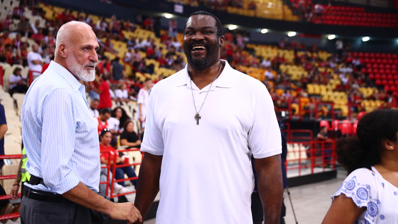 Φουλ ανανεωμένος εμφανίστηκε ο Σοφοκλής Σχορτσιανίτης στη μεγάλη βραδιά που διοργανώνει η ομάδα μπάσκετ του Ολυμπιακού προς τιμήν του Γιώργου Πρίντεζη.
