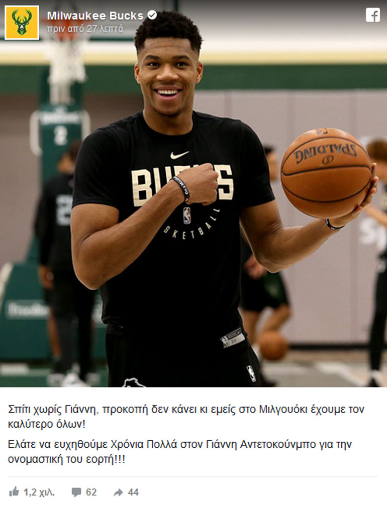 Ο Γιάννης Αντετοκούνμπο έχει την ονομαστική του εορτή και όπως είναι φυσικό οι Μιλγουόκι Μπακς δεν ξέχασαν τον μεγάλο αστέρα τους.