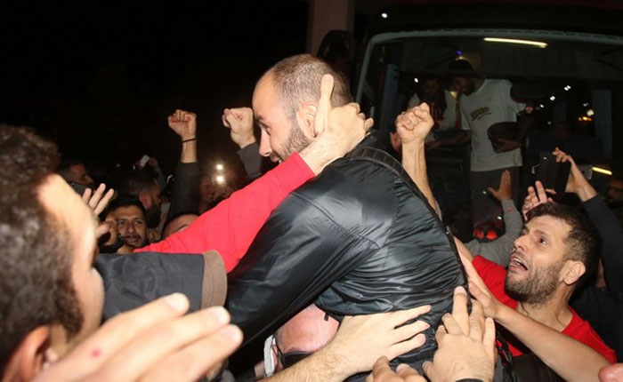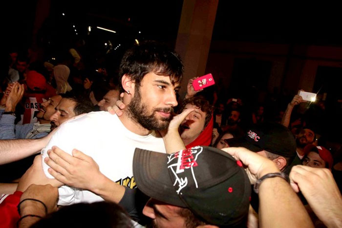 Οι φίλοι του Ολυμπιακού δεν σταμάτησαν να τραγουδούν. Μάλιστα, όταν κατέβηκαν από το πούλμαν οι Βασίλης Σπανούλης και Γιώργος Πρίντεζης, επικράτησε πανικός, ενώ σήκωσαν στον… αέρα τον αρχηγό της ομάδας.