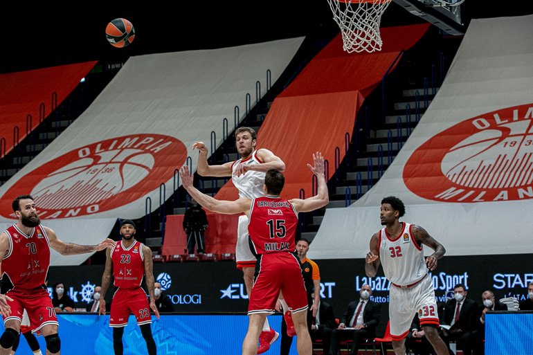Ο Ολυμπιακός, που πλήρωσε τα επιθετικά black out του, την ολιγωρία του στην άμυνα σε κρίσιμα σημεία και τα πολλά λάθη του, κρατά την εξαιρετική εμφάνιση από Σάσα Βεζένκοφ (18π., 10ρ.) και Κώστα Σλούκα (17π., 7ασ.) και τη δύναμη να επιστρέφει απέναντι σε μία ομάδα με τέσσερις διψήφιους παίκτες (Πάντερ, Ντιλέινι, Ροντρίγκεθ και Ντατόμε). Απέναντι, όμως και σε μία ομάδα, την Αρμάνι που εκτέλεσε 18 περισσότερες βολές από τον Ολυμπιακό!