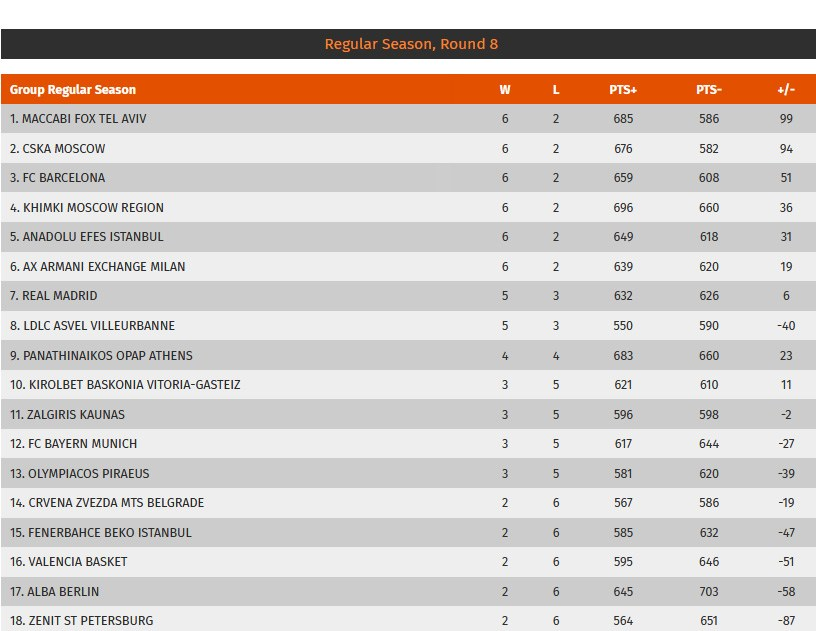 Το πρόγραμμα της 9ης αγωνιστικής της Euroleague έχει ως εξής: