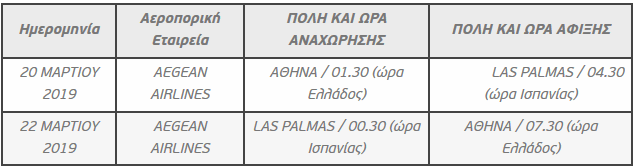 ΑΘΗΝΑ – ΑΕΡΟΔΡΟΜΙΟ LAS PALMAS – ΞΕΝΟΔΟΧΕΙΟ