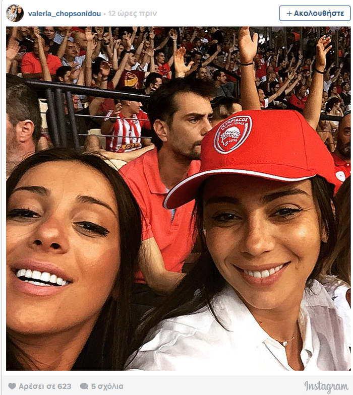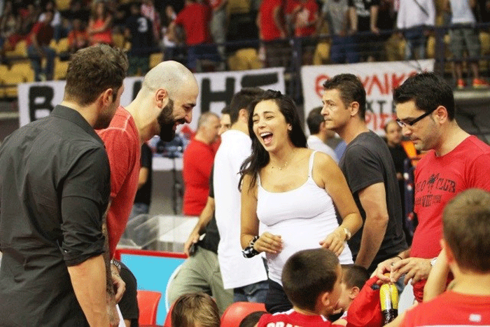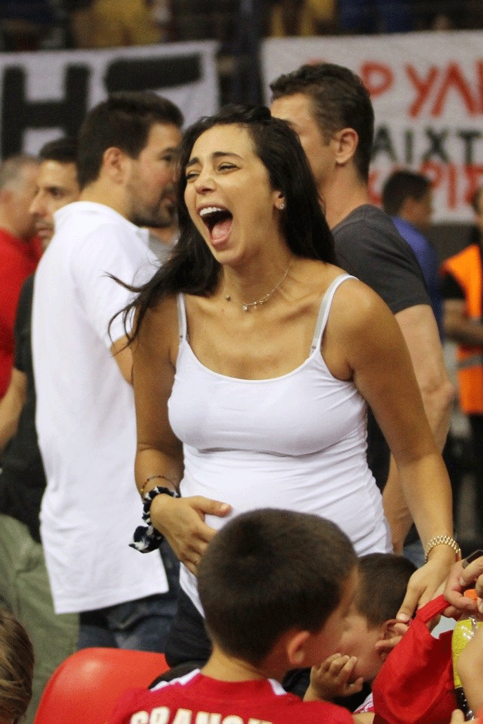 Φυσικά το «παρών» στο γήπεδο έδωσε η Ολυμπία Χοψονίδου, η οποία αν και γεννάει σε λίγες εβδομάδες ήταν εκεί για να στηρίξει τον σύζυγό της, Βασίλη Σπανούλη και να πανηγυρίσει τη νίκη του Ολυμπιακού μαζί με τα παιδιά της και την αδελφή της Βαλέρια.