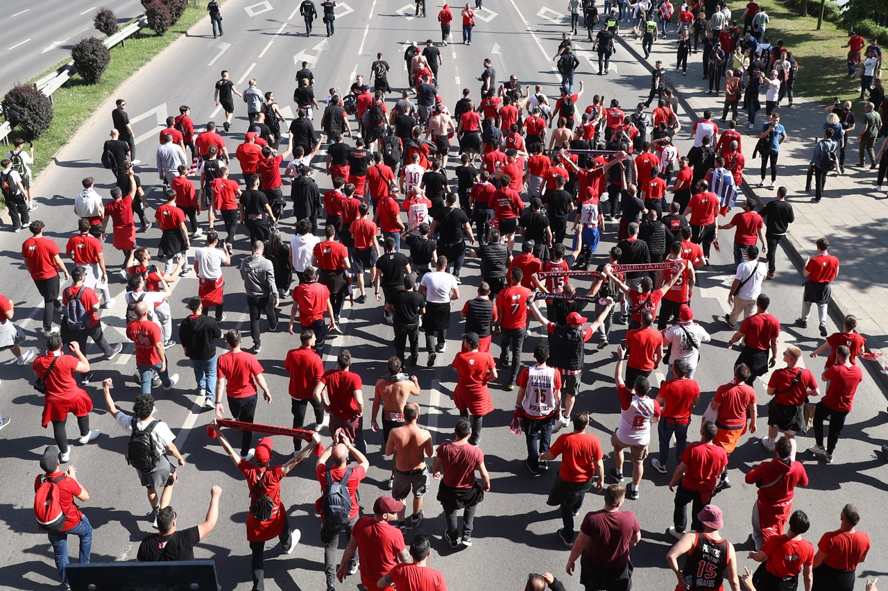 Η πορεία των φίλων του Ολυμπιακού προς τη Ζαλγκίριο Αρένα