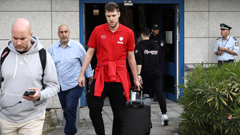Επέστρεψε στην Αθήνα η αποστολή του Ολυμπιακού από το Κάουνας, όπου έχασε στις λεπτομέρειες το τρόπαιο από τη Ρεάλ Μαδρίτης στον τελικό της Euroleague.