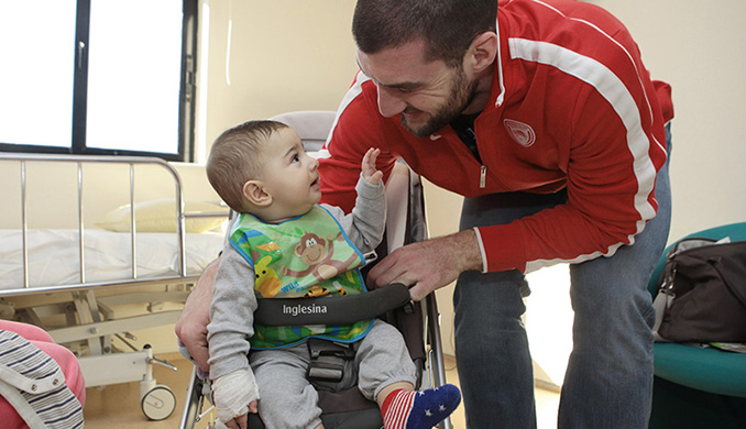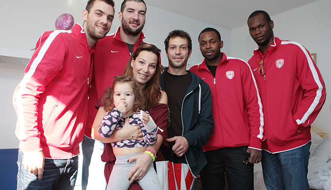 Οι τέσσερις καλαθοσφαιριστές του Ολυμπιακού με τη συνοδεία του ιατρικού προσωπικού, επισκέφτηκαν όλα τα δωμάτια της κλινικής και μίλησαν με όλους τους μικρούς ασθενείς ευχόμενοι τους να πάρουν γρήγορα εξιτήριο».