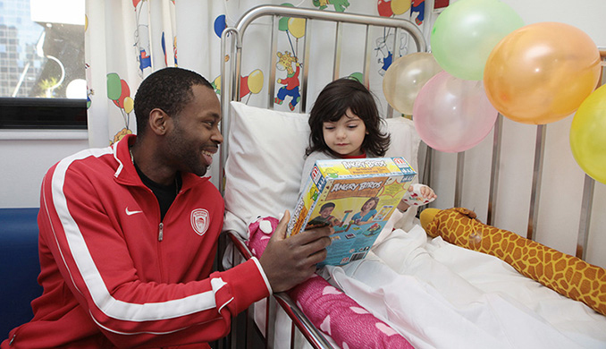 Οι Βαγγέλης Μάντζαρης, Μπρεντ Πέτγουεϊ, Όλιβερ Λαφαγιέτ και Βασίλης Καββαδάς επισκέφτηκαν τους μικρούς ασθενείς της παιδιατρικής κλινικής του Ιατρικού Κέντρου και μοίρασαν δώρα.