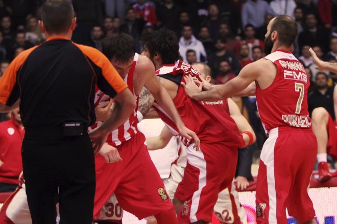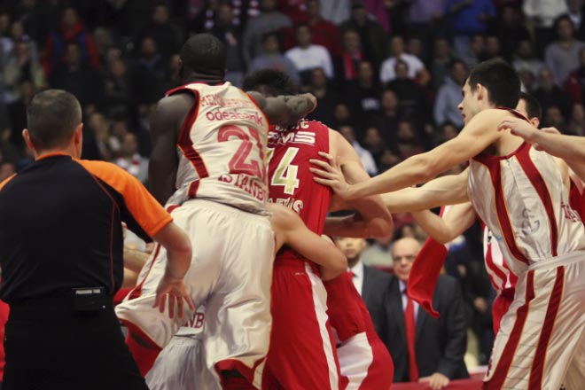 Σε πεδίο μάχης μετατράπηκε την Πέμπτη το ΣΕΦ τρία περίπου λεπτά πριν τη λήξη του αγώνα ανάμεσα στον Ολυμπιακό και τη Γαλατάσαραϊ, για τους ομίλους της Euroleague.