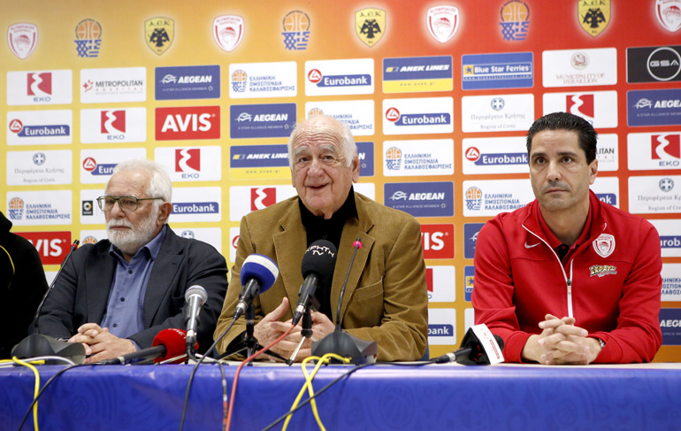 Πραγματοποιήθηκε το απόγευμα της Παρασκευής η συνέντευξη Τύπου για τον τελικό Κυπέλλου Ανδρών ανάμεσα σε Ολυμπιακό και ΑΕΚ. Το ματς θα γίνει στα «Δύο Αοράκια» του Ηρακλείου (18/2, 17:15, ΕΡΤ 1) με τους φορείς και τους εκπροσώπους των φιναλίστ να εύχονται να διεξαχθεί μία όμορφη μπασκετική αναμέτρηση.