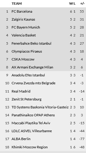 Το πρόγραμμα της 8ης αγωνιστικής στη Euroleague έχει ως εξής: