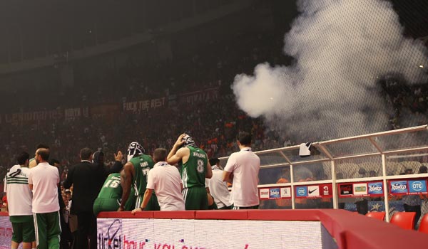 Σε εκείνο το σημείο ο Μπαρτζώκας πήρε τάιμ άουτ και ακολούθησε πανδαιμόνιο πίσω από τον πάγκο του Παναθηναϊκού με εισβολή των οπαδών, δυναμιτάκια και καπνογόνα.