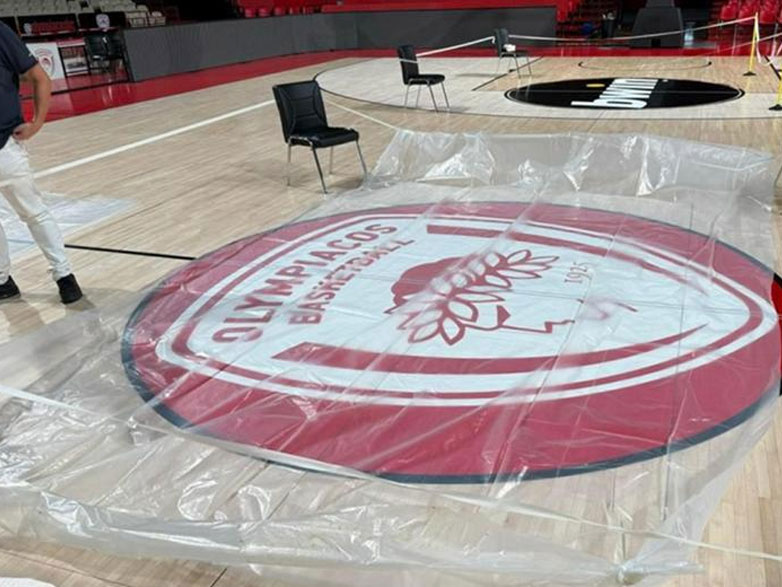 Για μία ακόμα φορά το ΣΕΦ πλημμύρισε … Η κακοκαιρία και η βροχή γέμισαν νερά το γήπεδο του Ολυμπιακού και οι υπεύθυνοι του γηπέδου τοποθέτησαν νάιλον στο παρκέ για να το προστατέψουν.