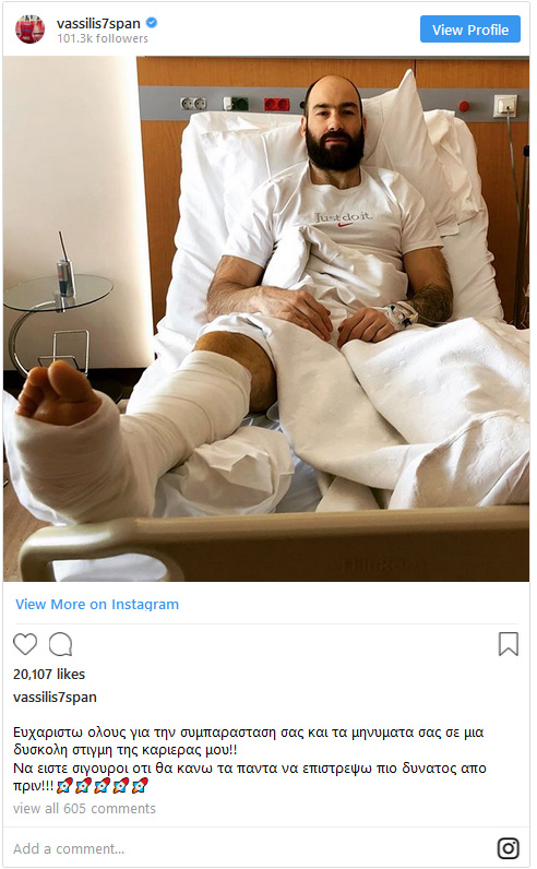 Ο Βασίλης Σπανούλης χειρουργήθηκε και θα μείνει εκτός δράσης για 5-6 μήνες. Ο αρχηγός του Ολυμπιακού με μήνυμά του μέσω Instagram δήλωσε πως θα επιστρέψει πιο δυνατός.
