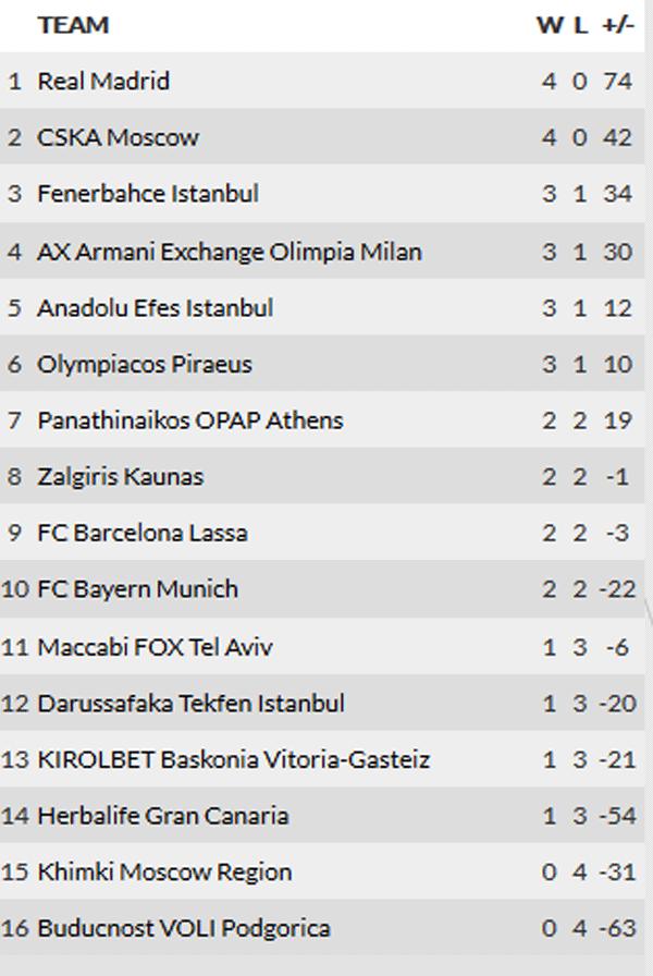 Με τον Παναθηναϊκό να γνωρίζει την ήττα στην παράταση από την Ζαλγκίρις στο ΟΑΚΑ ολοκληρώθηκε η 4η αγωνιστική της Ευρωλίγκας. Δείτε τα αποτελέσματα και την κατάταξη που έχει διαμορφωθεί: