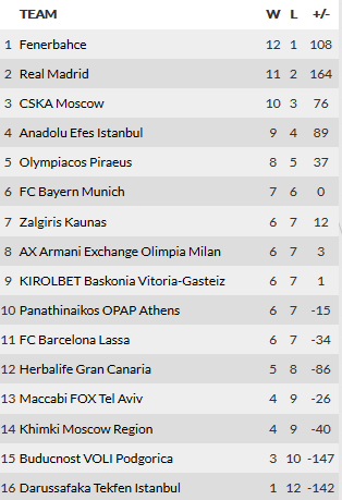 Με τον Παναθηναϊκό να γνωρίζει την ήττα από την Ρεάλ και τον Ολυμπιακό να κερδίζει την Μπαρτσελόνα στην Καταλονία ολοκληρώθηκε η 13η αγωνιστική της Ευρωλίγκας. Δείτε τα αποτελέσματα και την κατάταξη της διοργάνωσης: